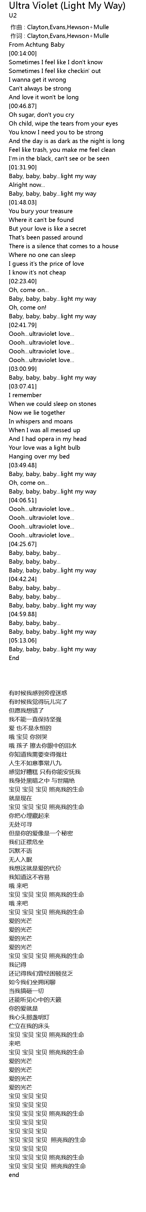 | [02:25.62] | Baby, baby, baby...light my way |