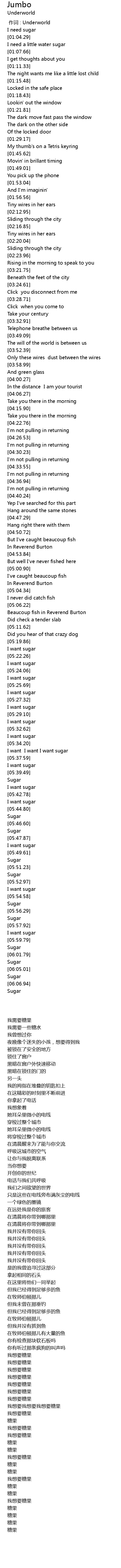 | [01:05.28] | 我需要一些糖水 |