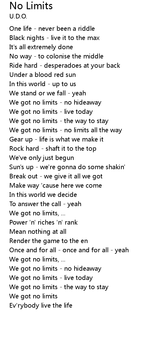 We got no limits - no limits all the way |
