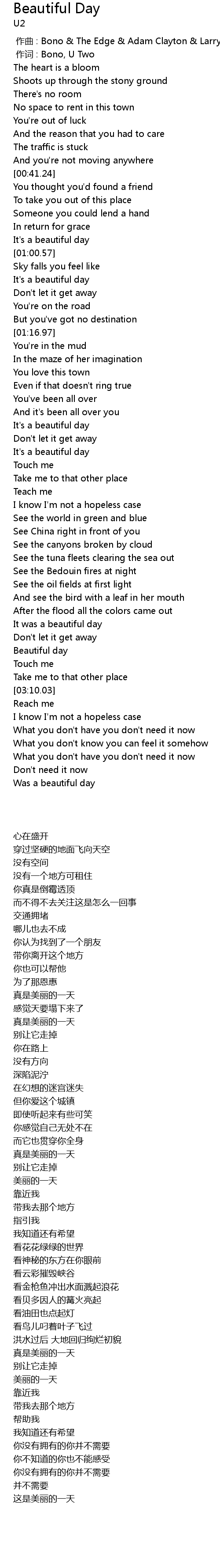 | [00:00.00] | zuo qu : Bono The Edge Adam Clayton Larry Mullen |