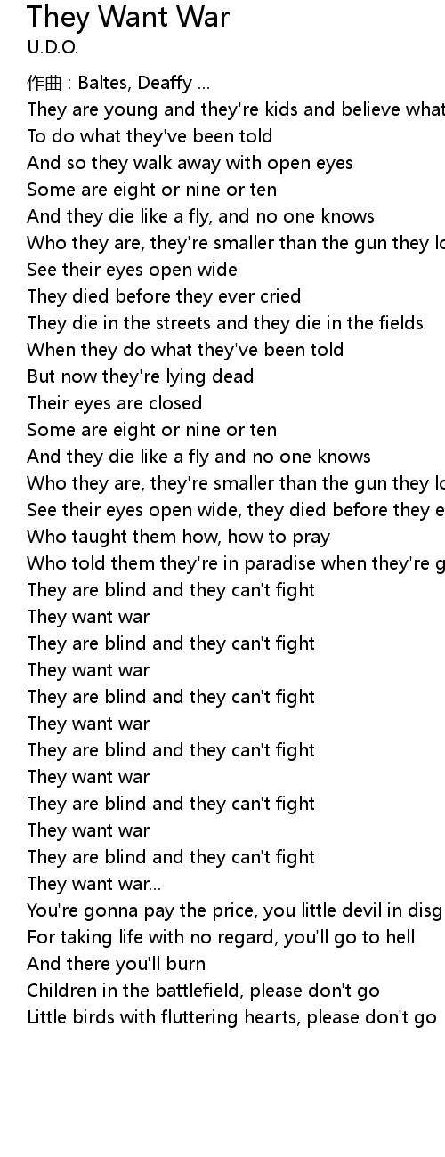 | 歌曲 | They Want War |