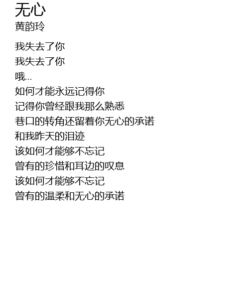 | 歌曲 | 无心 |