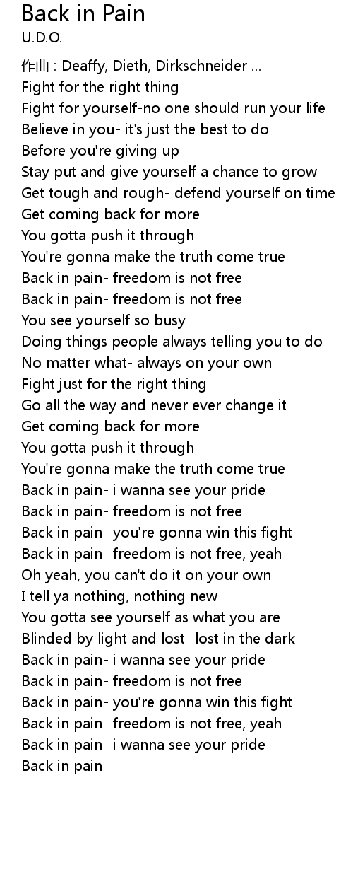 | Back in pain- freedom is not free, yeah | |