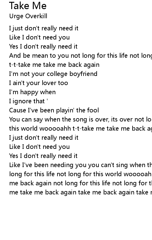 Like I've been needing you you can't sing when the song is over, its over not long for this life not long for this world wooooahh t-t-take me goddammit take me back again not long for this life not long for this world wooooahh t-t-take me take me back again take me back again take me back againi |