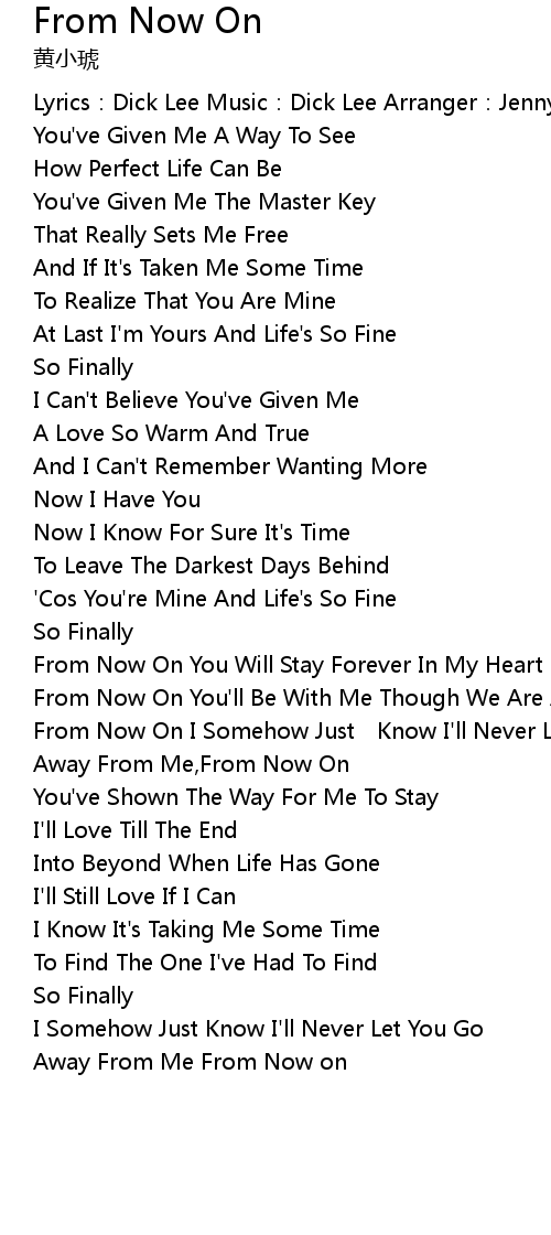 | From Now On I Somehow Just Know I' ll Never Let you Go | |