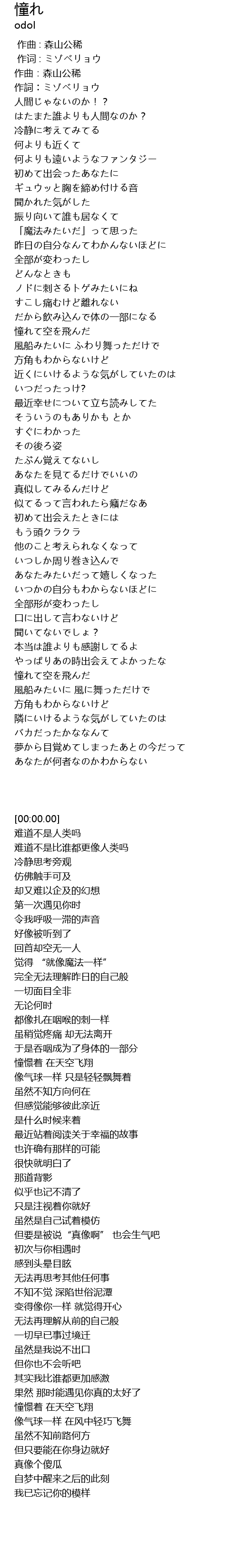 | [00:00.00] | 作詞︰ミゾベリョウ |