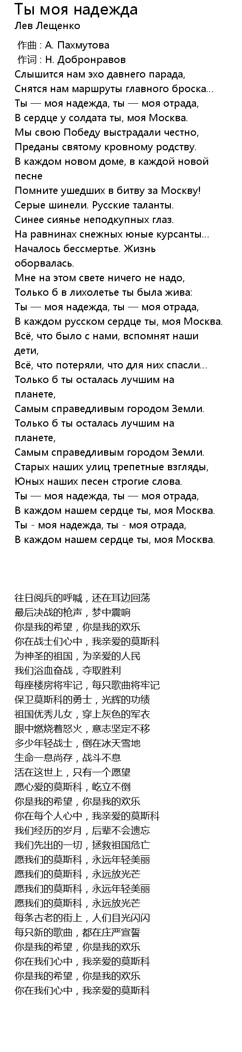 | [03:32.47] | 你在我们心中,我亲爱的莫斯科 |