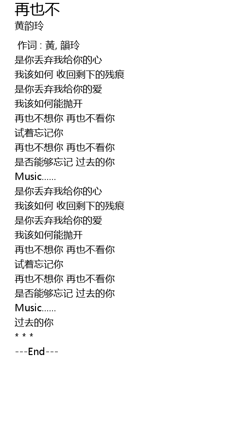 | [00:00.00] | 作词 : 黃, 韻玲 |