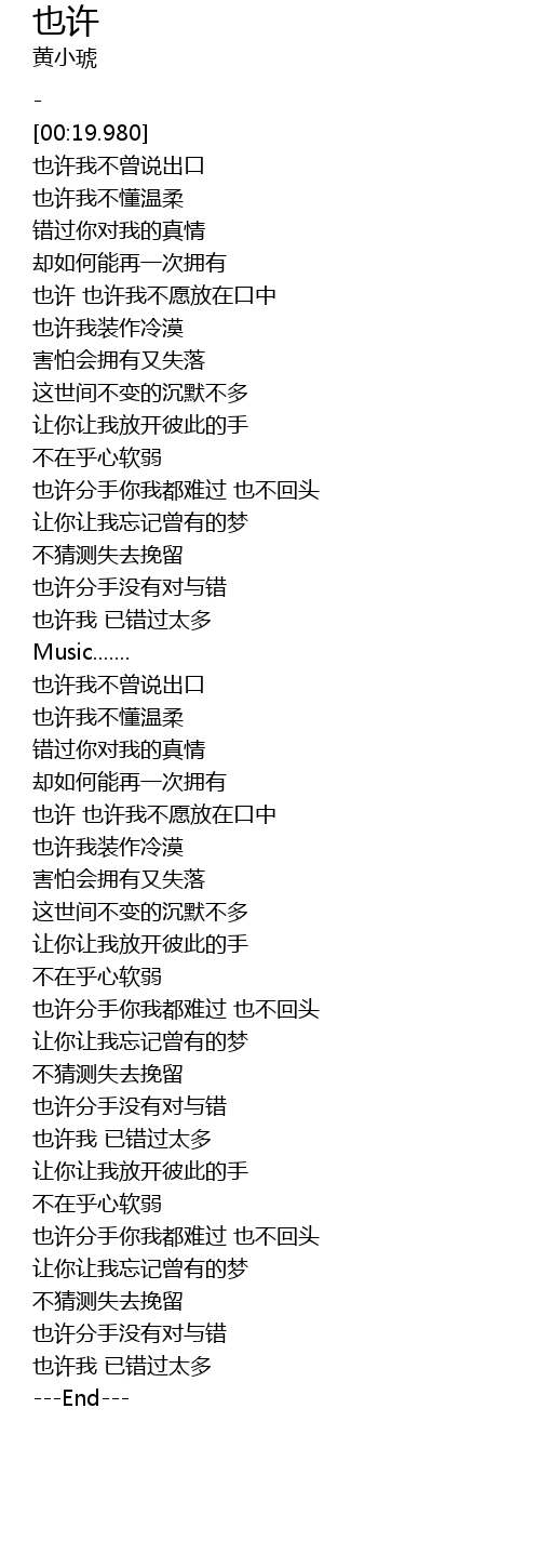| [01:46.150] | ye xu wo yi cuo guo tai duo |