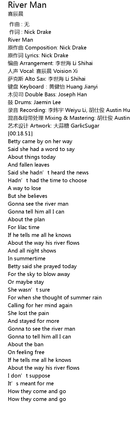 | [00:02.12] | River Man |