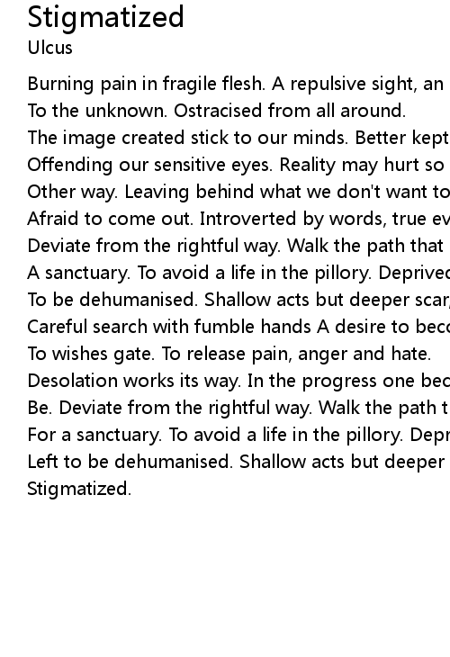 To be dehumanised. Shallow acts but deeper scar, burning pain stigmatized. |