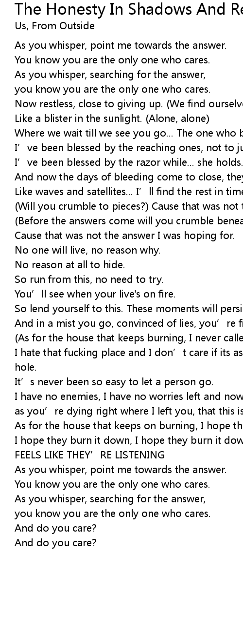 | 歌曲 | The Honesty In Shadows And Reflections |
