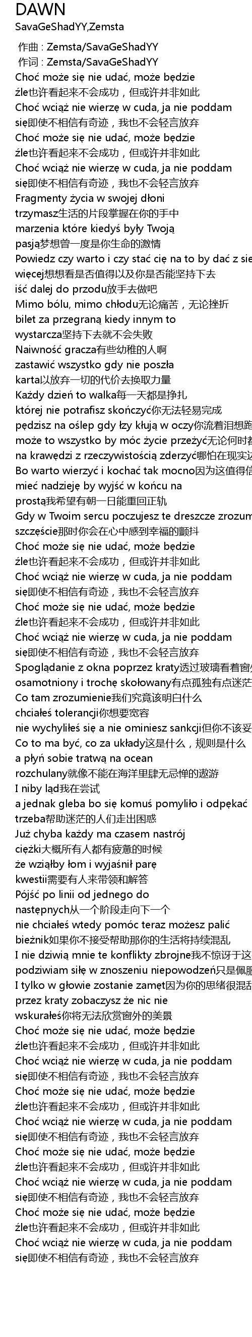 | [00:01.000] | 作词 : Zemsta/SavaGeShadYY |