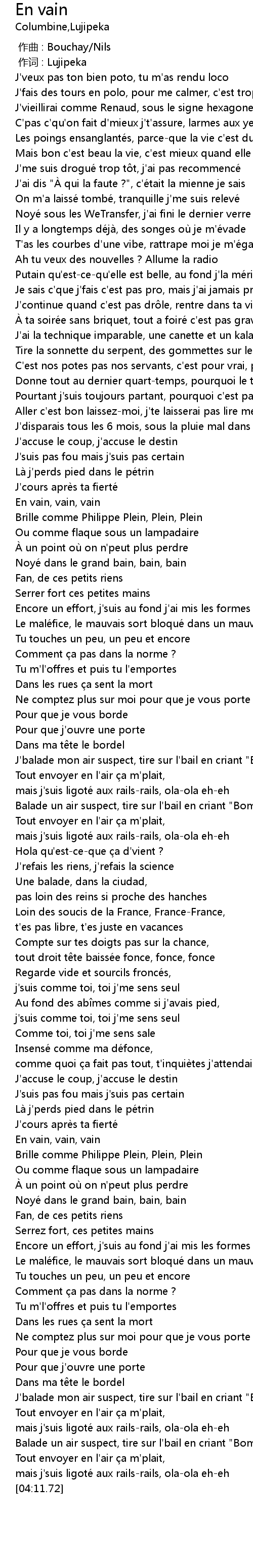 | [01:31.69] | En vain, vain, vain |