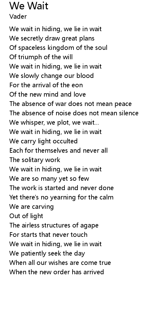 | We wait in hiding, we lie in wait | |