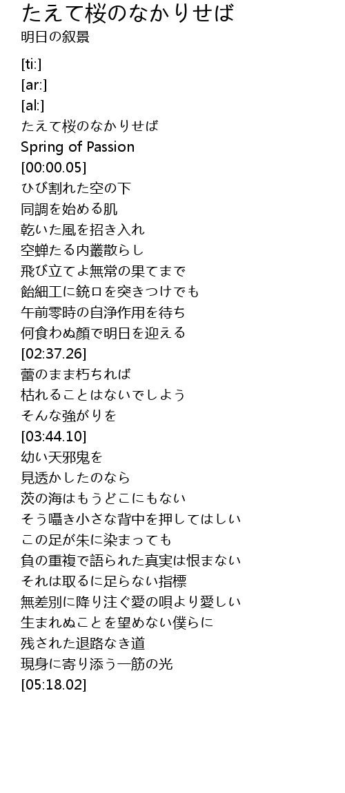 | [05:05.19] | 生まれぬことを望めない僕らに |