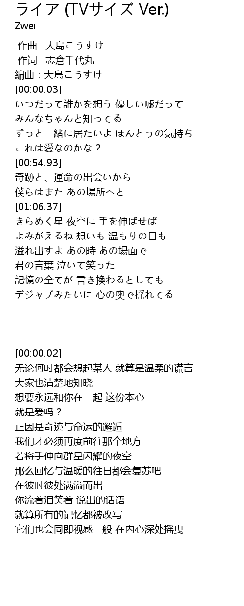 | 歌曲 | ライア (TVサイズ Ver.) |