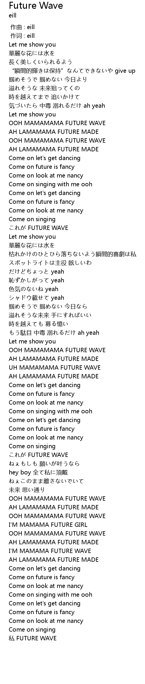| [03:19.727] | I'M MAMAMA FUTURE WAVE |