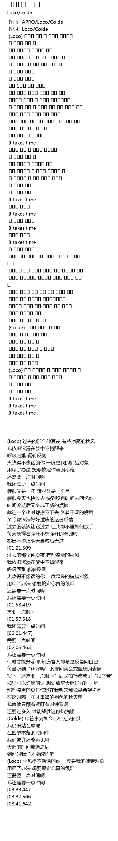 | [00:19.152] | (Loco) 지나간 여름 밤 시원한 가을바람 |