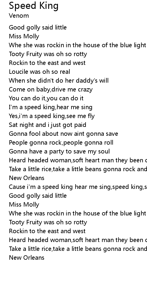 Cause i'm a speed king hear me sing,speed king,see me fly |