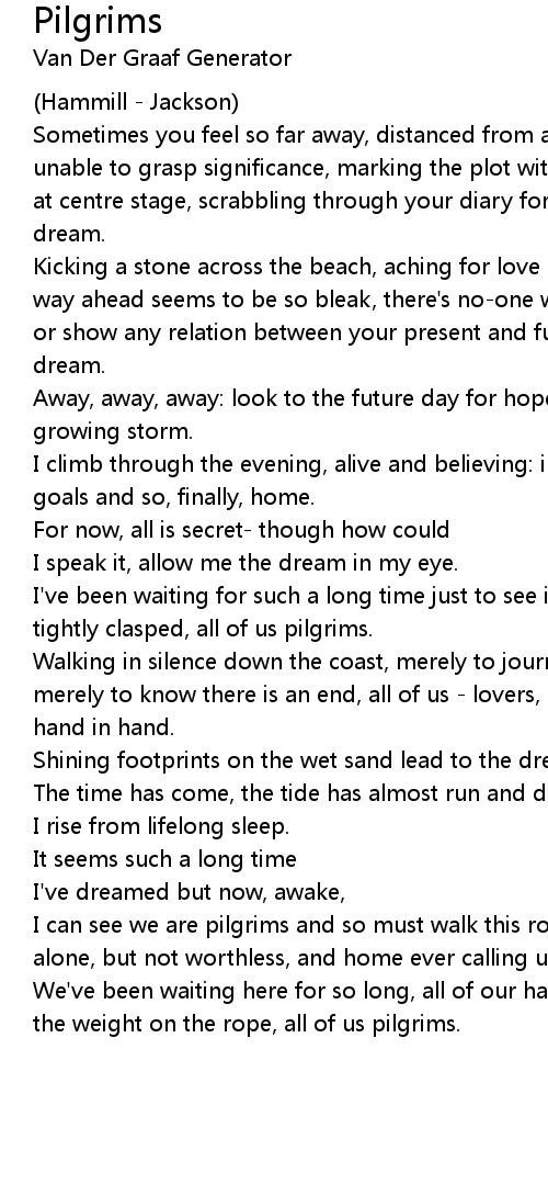 We've been waiting here for so long, all of our hands joined in hope, holding the weight on the rope, all of us pilgrims. |