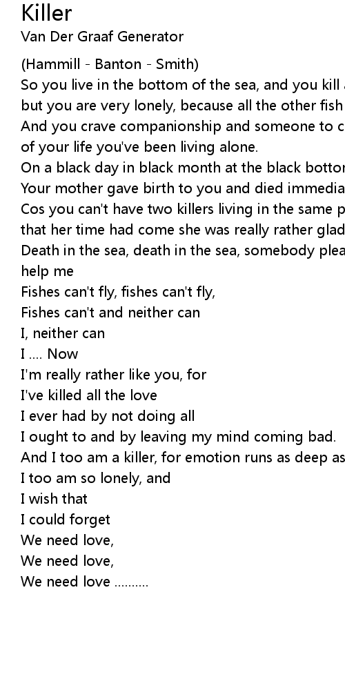 Cos you can't have two killers living in the same pad and when your mother knew that her time had come she was really rather glad. |