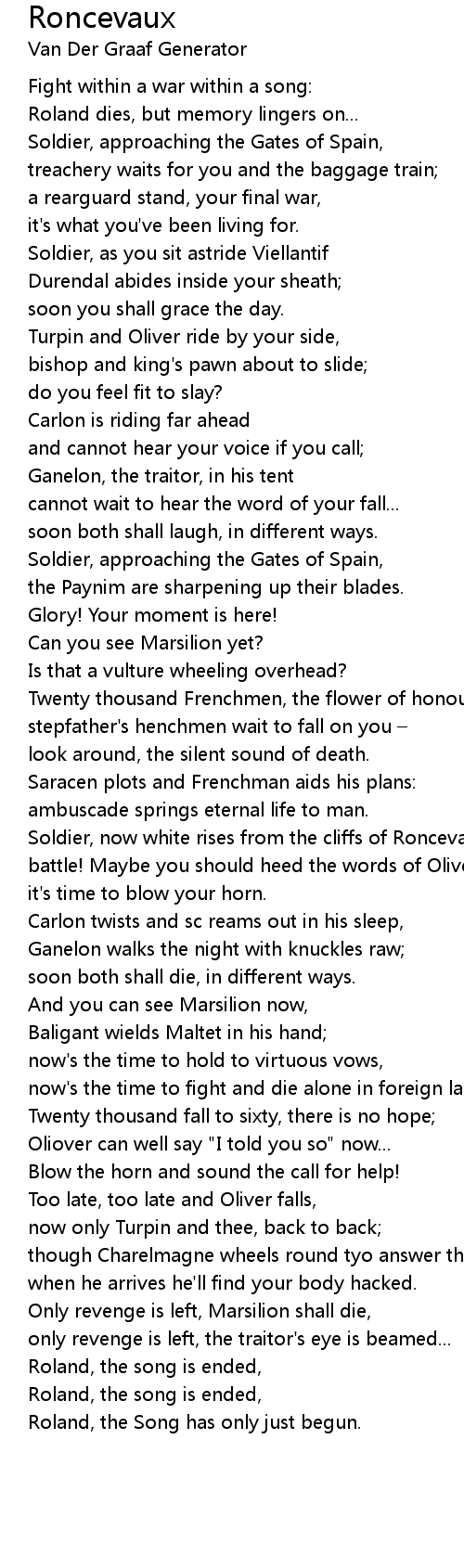 | Soldier, now white rises from the cliffs of Roncevaux | |