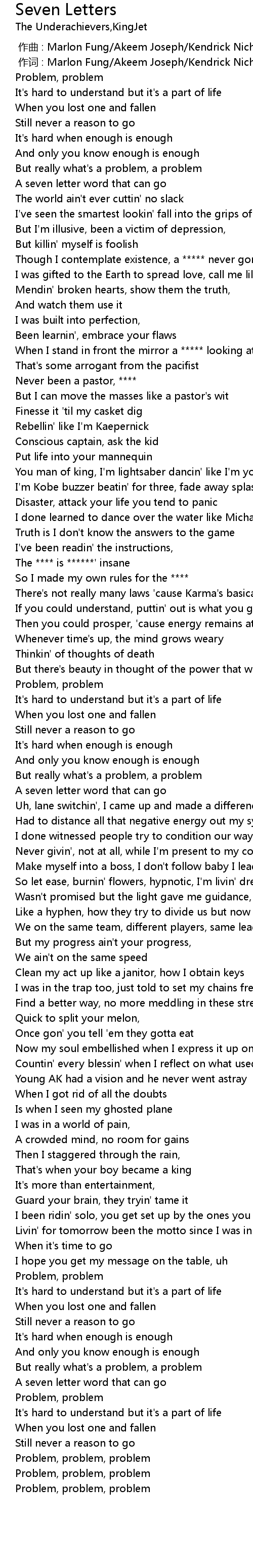 | [00:54.39] | Rebellin' like I' m Kaepernick |