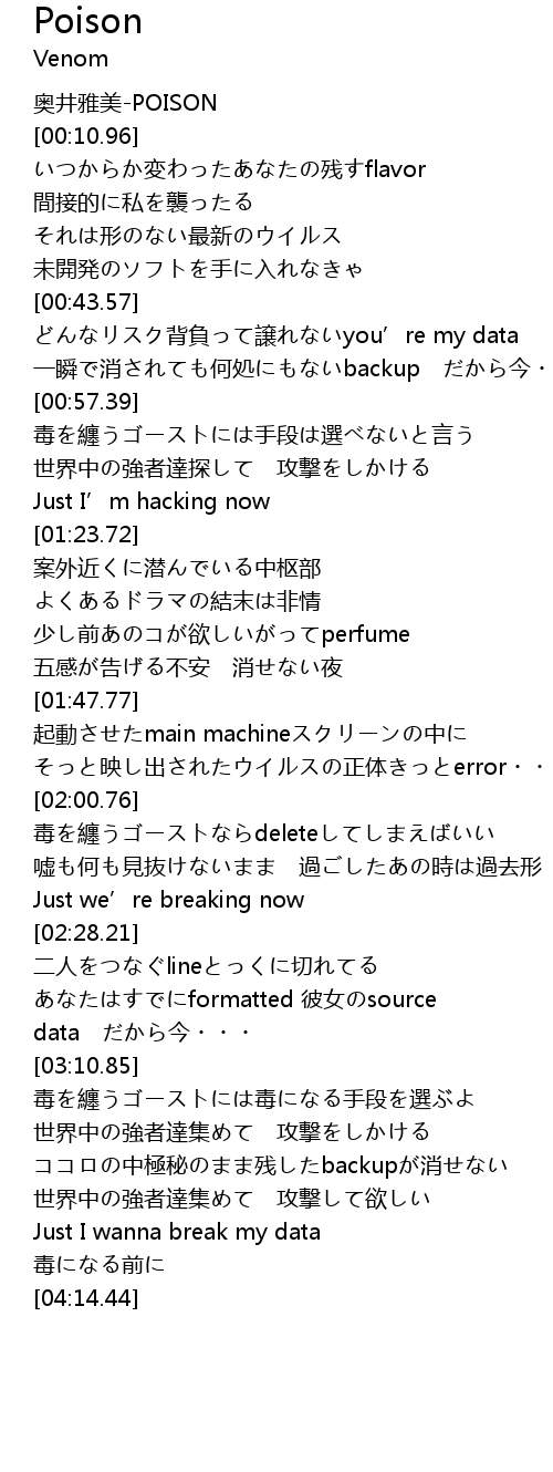 | [00:00.00] | ào jǐng yǎ měi POISON |