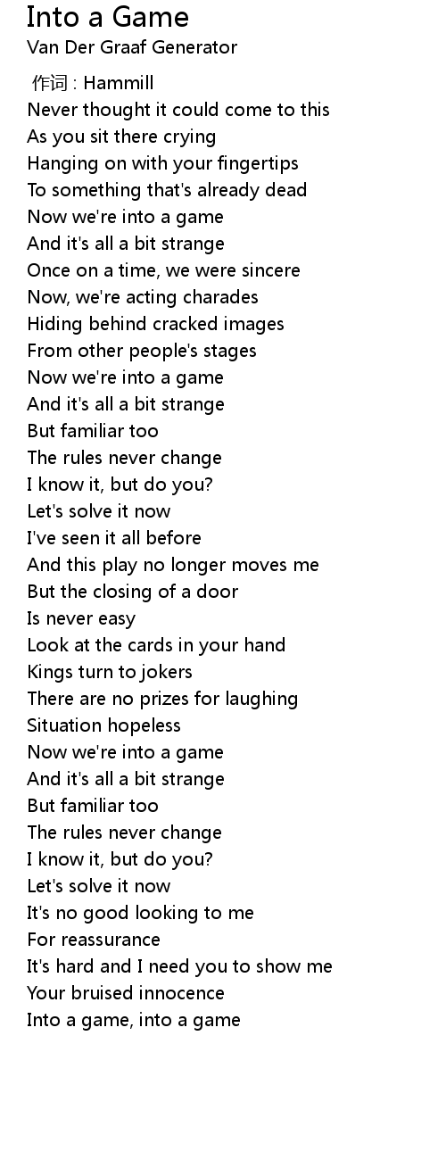 | [01:19.81] | Now we' re into a game |