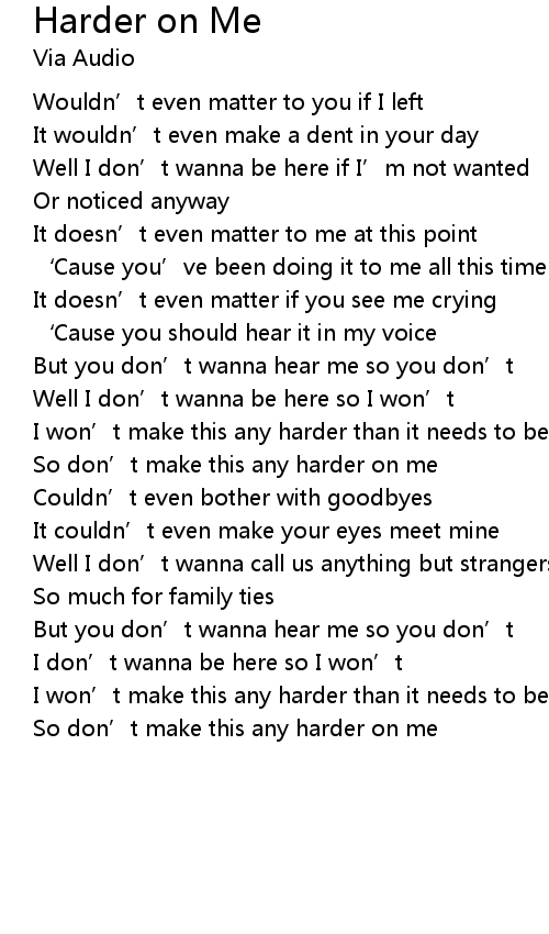 | So don' t make this any harder on me |