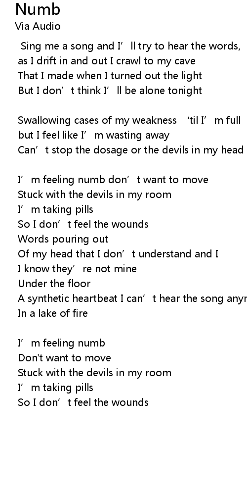 | A synthetic heartbeat I can' t hear the song anymore drowning | |