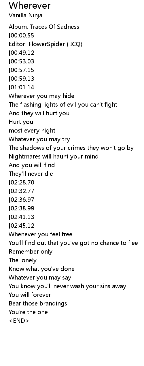 [00:00.65][00:49.12][02:12.57] Wherever you may go there's no escape