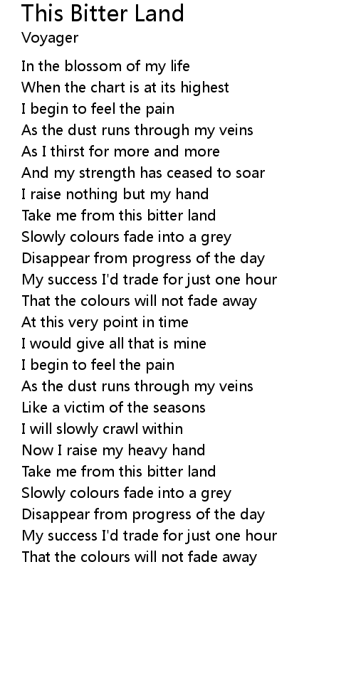 | Take me from this bitter land | |