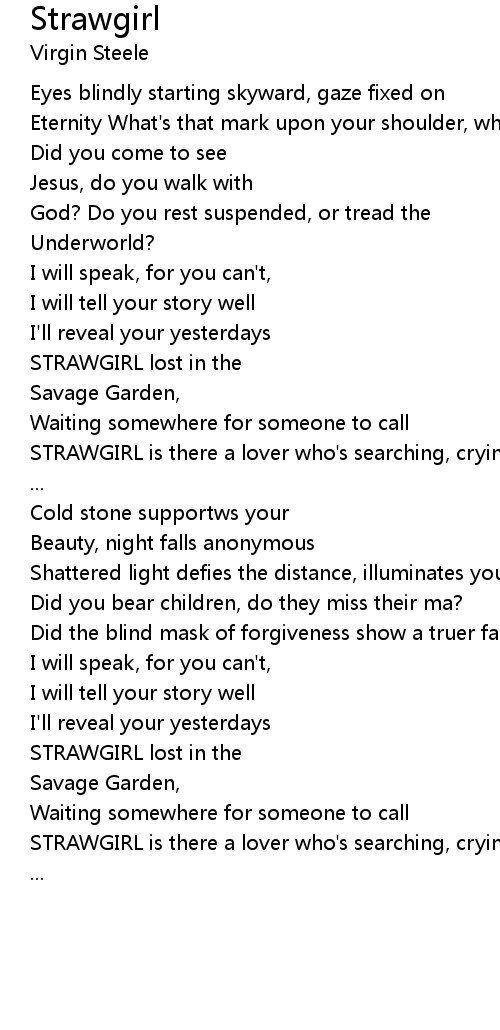 STRAWGIRL is there a lover who's searching, crying, no one to notice you're gone ... |