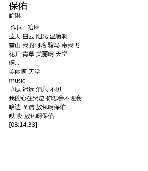 | [02:41.80] | 哈达 圣洁 敖包啊保佑 |