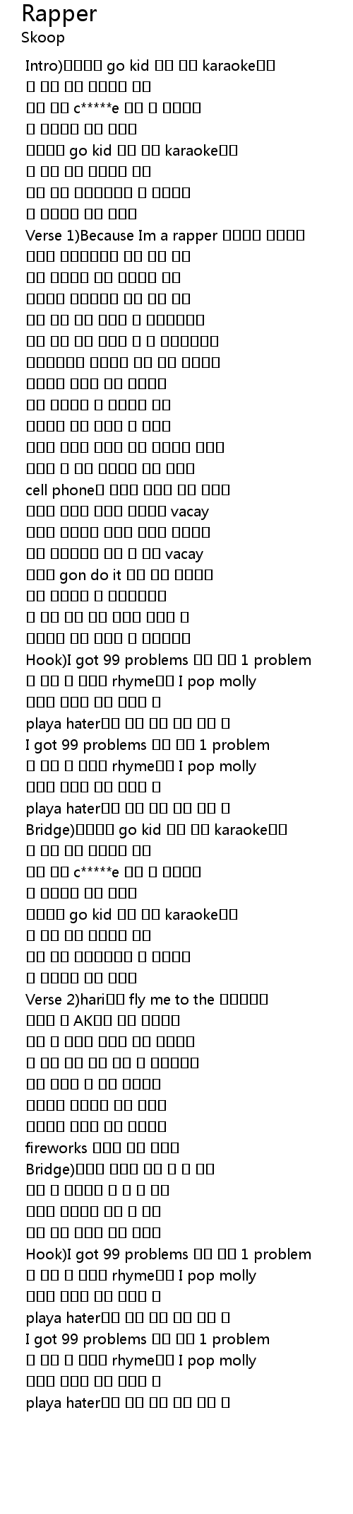 | [01:35.264] | Hook)I got 99 problems 그건 사실 1 problem |