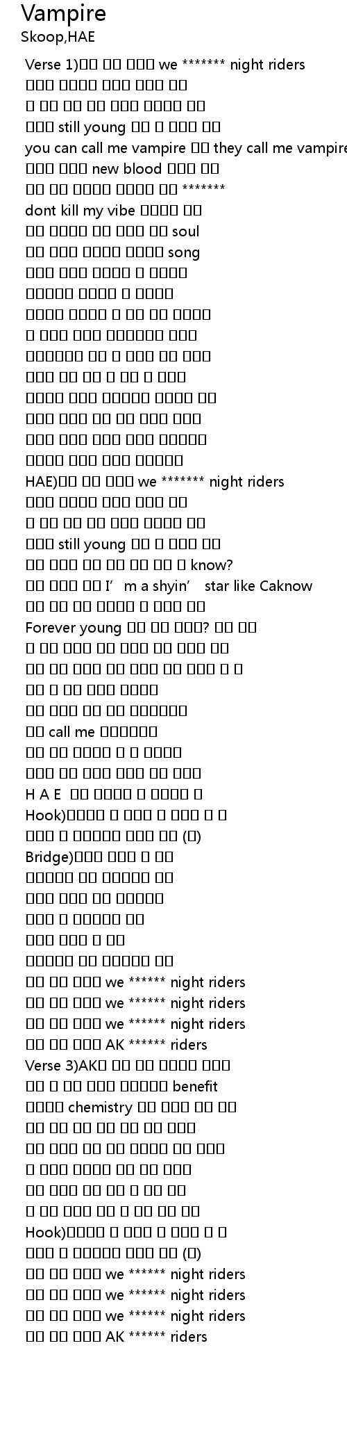 [00:10.839] Verse 1)밤을 걷는 소리꾼 we ******* night riders