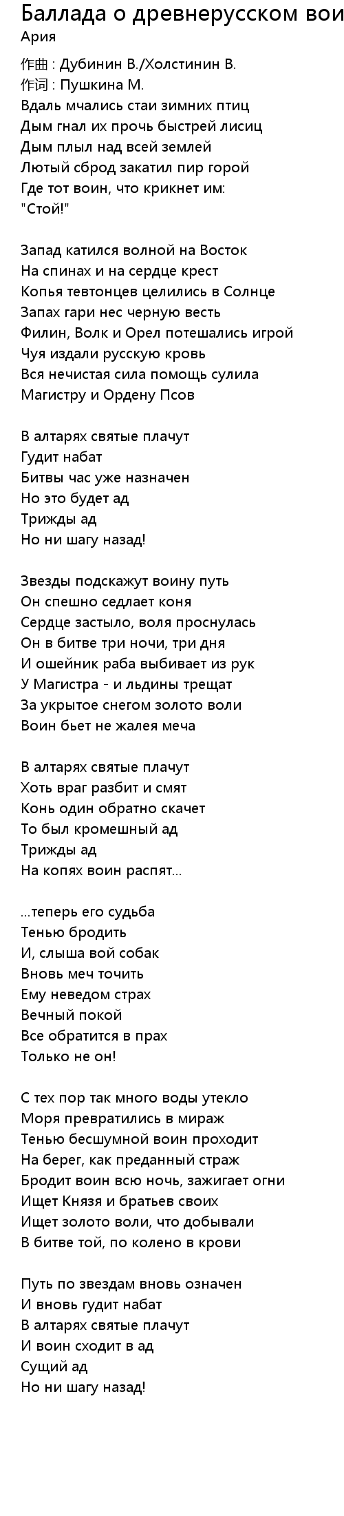 作曲 : Дубинин В./Холстинин В. |