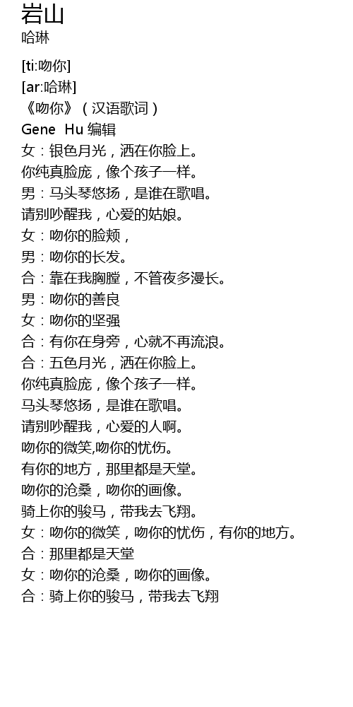 | [00:05.167] | 《吻你》(汉语歌词) |