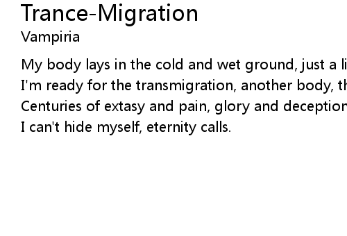 | I'm ready for the transmigration, another body, the same life. | |