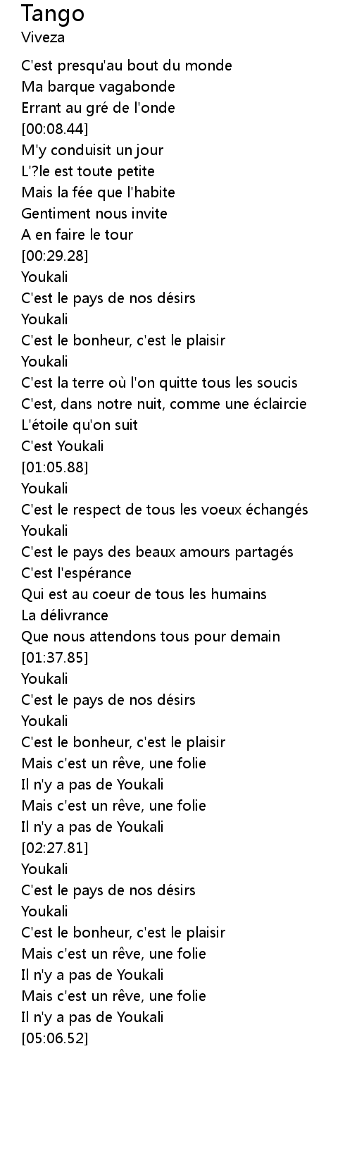| [02:18.69] | Il n 039 y a pas de Youkali |