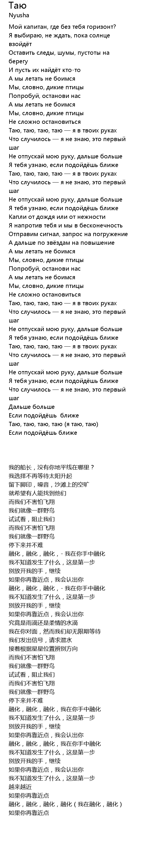 | [02:34.77] | Таю, таю, таю, таю — я в твоих руках |