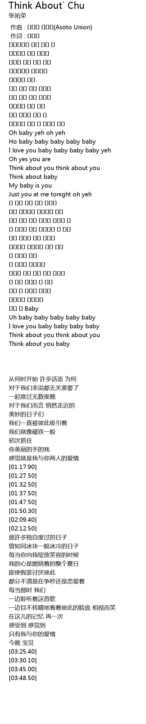 | [03:48.50] | Think about you baby |