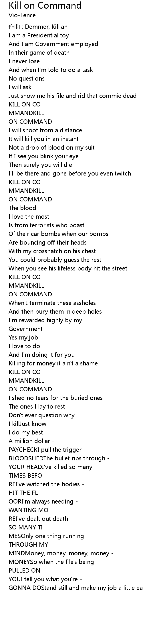 | 歌曲 | Kill on Command |