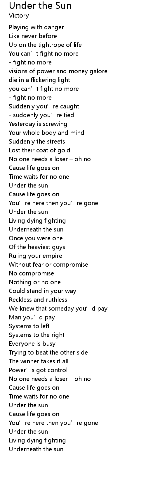 | 歌曲 | Under the Sun |