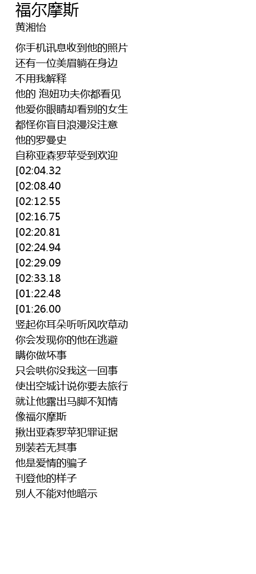 | 歌曲 | 福尔摩斯 |