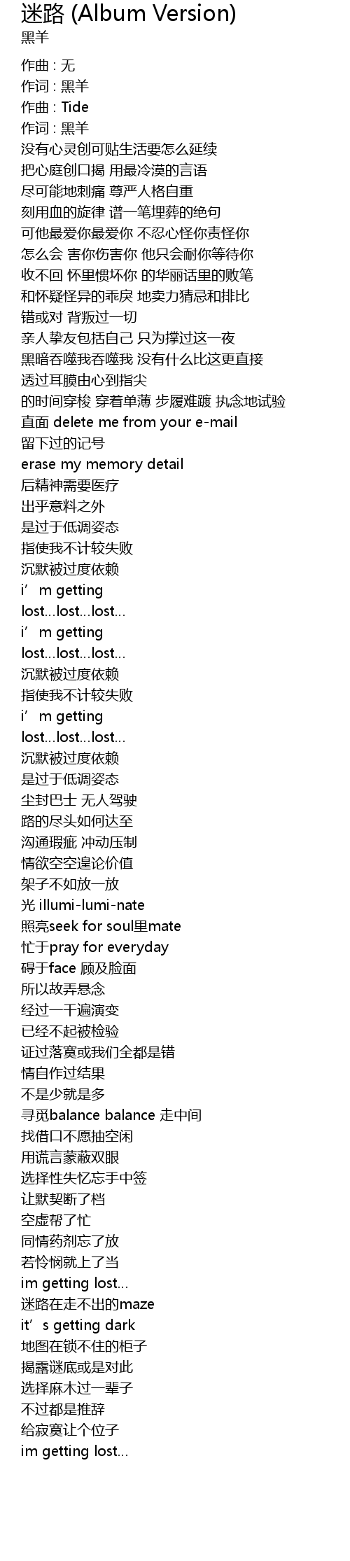 | 歌曲 | 迷路 (Album Version) |
