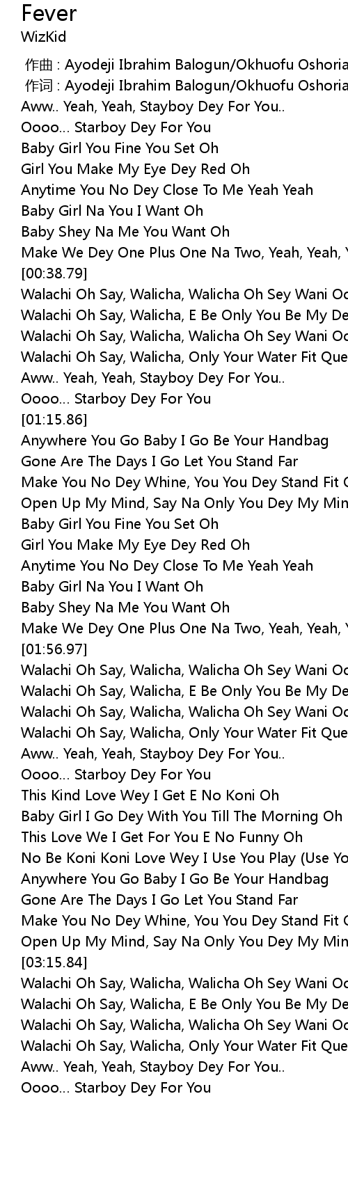| [02:42.35] | Baby Girl I Go Dey With You Till The Morning Oh |