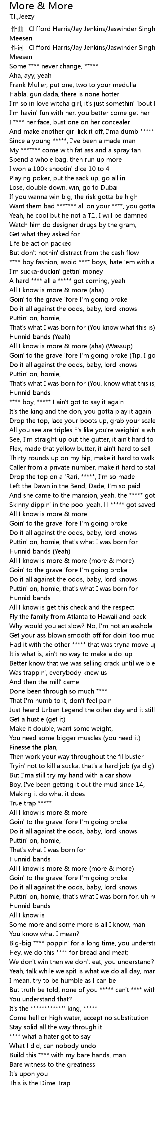 | [01:25.95] | Goin' to the grave 'fore I'm going broke (Tip, I got you, *****) |